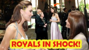 Her hair was styled in a chic half-up, half-down look, allowing her to flaunt exquisite diamond earrings and a braceletโ€”jewelry that holds sentimental value as it was a wedding gift from King Charles, her father-in-law.