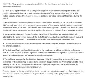 In conclusion, numerous questions surround the birth of Archie Mountbatten-Windsor, casting doubt on the accuracy of the information provided by Meghan and Harry.